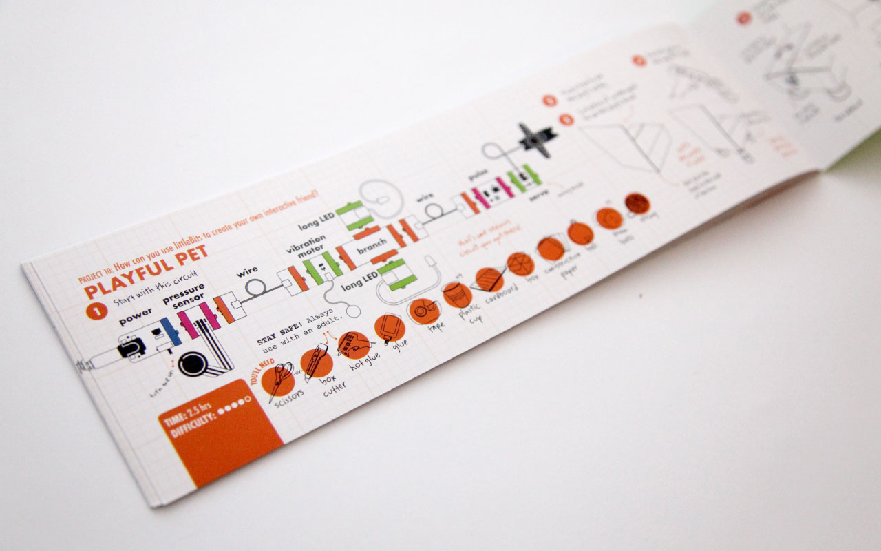 During my summer internship at littleBits, I worked on illustration and layout design in booklets and on the boxes. These photographs show illustration and layouts in Base and Premium Kits. I also worked on various other projects that are not yet released.